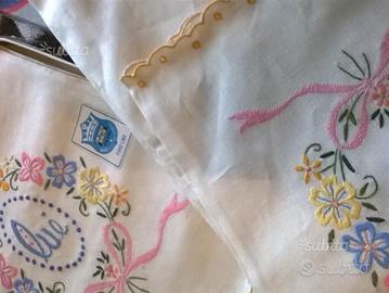Asciugamani anni 50 in puro lino con ricamo.confezioni da 6 pezzi in scatola