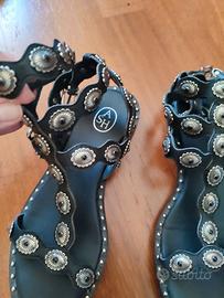 Bellissimi sandali originali Ash in vera pelle nera e borchie, tg 37.