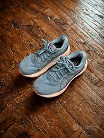 Vendo ASICS Gel-Kayano 30 da donna, colore blu/teal, numero 39. Modello con tecnologia PureGEL, molto ammortizzato e stabile, ideale per corsa su strada e allenamenti di media-lunga durata. Le scarpe sono usate ma in buone condizioni: tomaia integra, intersuola ancora performante e normali segni d’usura sulla suola. Ottima soluzione per chi cerca una scarpa confortevole e di qualità a prezzo contenuto.