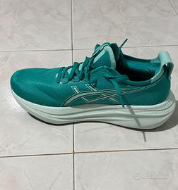 Scarpe da corsa Uomo. Colore INTROVABILE, ordinato e fatto arrivare dal sito Asics Americano, pagate a prezzo pieno 200 euro esclusa spedizione. Indossate solo 3 volte senza mai correrci; sono praticamente immacolate. Vendo per inutilizzo dato alcuni problemi fisici subentrati poco dopo. Tutte le caratteristiche tecniche del prodotto sono negli screen pubblicati insieme alle foto della scarpa.