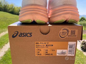 Vendo scarpe da corsa ASICS GEL-PULSE 17. Colore White/Pearl Pink (Women). Sono come nuove, in quanto le ho utilizzate solo un piaio di volte, ma purtroppo mi vanno piccole. (Scatola inclusa)
