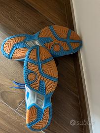 Scarpe nuove, mai indossate, che offrono alte prestazioni in ammortizzazione e comfort, adatte a sport indoor come pallavolo, pallamano, calcio a 5 ecc.