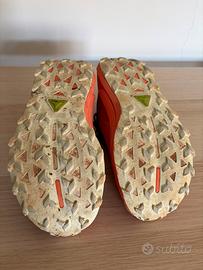 Vendo Asics Gel-Trabuco 13 in colorazione arancio fluo e nero. Scarpe usate pochissimo per un paio di uscite su sentiero, vendo solo per taglia errata. Le scarpe sono in condizioni perfette: • Tomaia: intonsa, senza graffi o strappi. • Ammortizzazione: intersuola ancora morbidissima e reattiva. • Suola: gomma ASICSGRIP con tacchetti praticamente nuovi, come visibile in foto. Scarpa fantastica: protettiva, leggera e con un grip incredibile sul bagnato. Ottima per il trail running e l'escursionismo veloce. Taglia: 41.5 (US8)