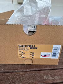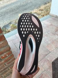 Scarpe con placca in carbonio, usate poco per errato numero, 39, 25 cm, l’unico difetto si vede sul tallone è dovuto ad un inciampo ma per il resto sono come nuove! per altre informazioni non esitate a contattarmi!