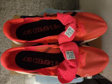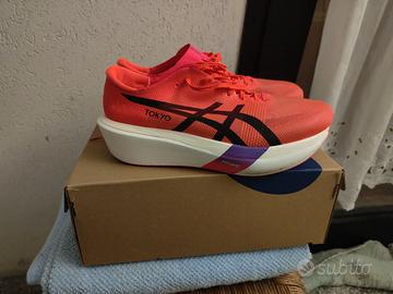 Scarpe usate un uscita(10km), pari al nuovo. Scarpe molto morbide,reattive e leggerissime. Colore molto sgargiante dal vero.