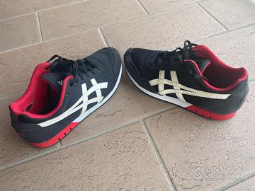Sneakers Asics donna usati, taglia 36 stile vintage, di colore nero-rosso-bianco. Ottime condizioni, molto leggere, suola integra, senza confezione originale. Senza difetti e danni. Come mostrano le foto.
