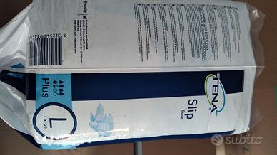 pannoloni, assorbenti Tena per adulti e anziani. un pacco 5 € che contiene 30 pannolini assorbenti. Ci sono diversi pacchi.