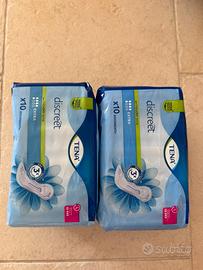 Assorbenti Tena Discreet donna 2 pacchi x 10 assorbenti ognuno Modello extra asciutto fino a 12 ore . In confezione integra mai aperta
