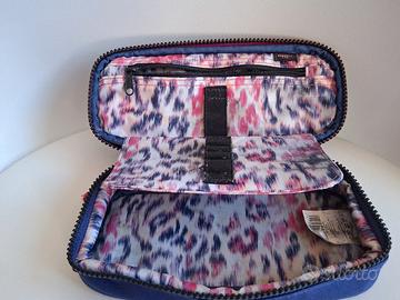 Astuccio edizione speciale viola con zip bicolore nero e fucsia. interno animalier colorato.