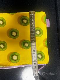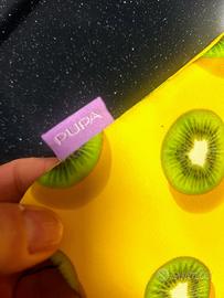 Vendo pochette PUPA originale, fantasia kiwi, nuova e mai usata. È ideale come beauty case, astuccio porta trucchi o pratica bustina da borsa. Materiale leggero ma resistente , zip viola e design fresco e colorato, perfetto per l’estate. Venduta vuota. Colori giallo , verde , viola Dimensioni: 25 x 17 cm. • pochette porta trucchi • mini beauty case • astuccio multiuso