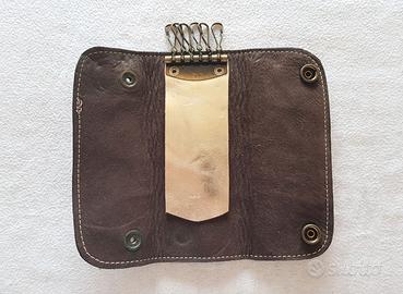 Portachiavi vintage ad astuccio in vera pelle argento 6 ganci.
