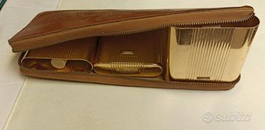 Vendesi astuccio vintage con tre contenitori di vetro più metallo esterno (come da foto) porta profumo, colonia, dopobarba ecc... Vintage, molto ben tenuto. Da aggiungere 10 Euro di spedizione in caso di invio.