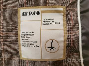 At.p.co giacca uomo trapuntata, fatta a mano. Colore marrone cangiante. Doppia chiusura con zip e bottoni. Due tasche grandi e un taschino esterni + taschino interno. Maniche con 3 bottoni. Spacchi posteriori chiusi da 2 bottoni. Taglia L. Lunghezza cm. 75. Larghezza busto cm. 54,5. Lunghezza manica cm. 65. Ottimo stato. No resi.