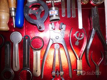 attrezzatura da orologiaio per riparazione e revisione orologi cronografi . Il vintage non mure mai e gli utensili durano sempre