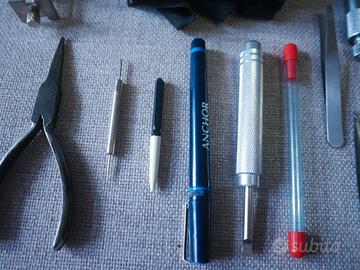attrezzatura da orologiaio per appassionati hobbisti per intervenire e fare qualche riparazione registro del orologio e cronografo