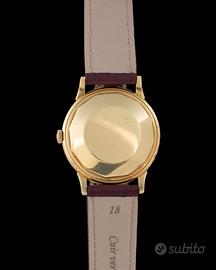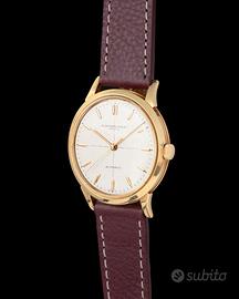 Audemars Piguet Automatic CrossHair. 18k Yellow Gold. N/S 11736. Elegante ,automatico vintage in oro giallo, espressione della più alta orologeria svizzera classica. Cassa dal profilo sottile e armonioso, tipica della produzione AP di metà Novecento, con anse slanciate e finiture raffinate. Quadrante originale color argento con leggera grana, firmato “Audemars Piguet Genève”, indici applicati e lancette dorate perfettamente coerenti con l’epoca. Secondi centrali. Scritta “Automatic” al 6, dettaglio distintivo dei modelli automatici vintage della Maison. Movimento automatico svizzero di manifattura, sinonimo di affidabilità e qualità costruttiva. Cinturino in pelle (non originale) che valorizza il carattere classico dell’orologio. Un segnatempo sobrio, ricercato e sempre attuale, ideale per collezionisti o per chi desidera un Audemars Piguet vintage elegante e discreto.
