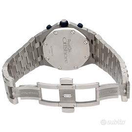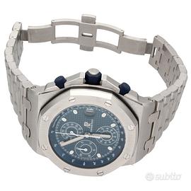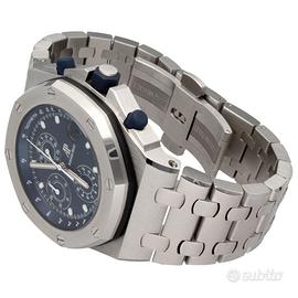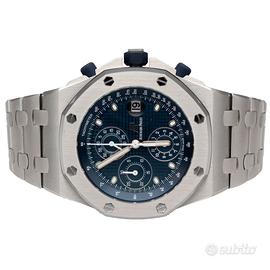 Audemars Piguet Royal Oak Offshore ref. 26237ST.OO.1000ST.01.A Blu Full Set Audemars Piguet Royal Oak Offshore in acciaio con quadrante blu, referenza 26237ST.OO.1000ST.01.A, in condizioni eccellenti e completo di corredo. Modello sportivo iconico della collezione Offshore, caratterizzato dalla classica cassa massiccia con finiture satinate e lucide e dal quadrante Méga Tapisserie blu. Dati tecnici: Marca: Audemars Piguet Modello: Royal Oak Offshore Referenza: 26237ST.OO.1000ST.01.A Seriale: J85XXX Carica: Automatico Materiale cassa: Acciaio Diametro: 42 mm Quadrante: Blu Méga Tapisserie Vetro: Zaffiro Bracciale: Acciaio Chiusura: Déployante Audemars Piguet Funzioni: Ore Minuti Secondi Cronografo Data Corredo: Scatola Audemars Piguet Travel box Garanzia originale Maglie di riserva Full set come da foto Garanzia: Nostra garanzia 24 mesi. L'orologio è originale e di lecita provenienza. Per visionare l'orologio di persona è necessario prendere un’ appuntamento in negozio. L'orologio viene venduto comprensivo di garanzia del nostro negozio, valida 24 mesi e garantisce il buon funzionamento, l’originalità e la lecita provenienza. Le foto pubblicate sono realmente dell’orologio in vendita. Permutiamo e acquistiamo il vostro orologio usato delle migliori maison svizzere. Spediamo solo in Europa, con corriere assicurato di nostra fiducia.