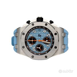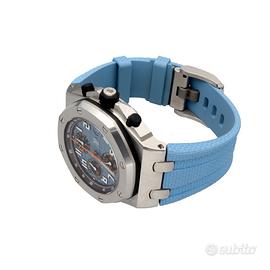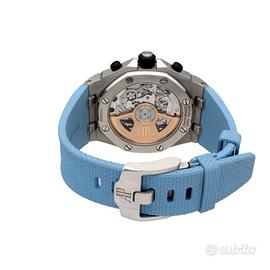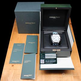 Audemars Piguet Royal Oak Offshore Ref. 26238ST.OO.A340CA.01 Quadrante Blu Full Set Proponiamo in vendita un Audemars Piguet Royal Oak Offshore, referenza 26238ST.OO.A340CA.01, uno dei modelli più rappresentativi della linea sportiva della Maison. Caratterizzato da un design deciso e contemporaneo, si distingue per il quadrante blu di forte impatto visivo abbinato al cinturino in gomma, che ne esalta il carattere dinamico e versatile. Un segnatempo iconico, pensato per chi cerca presenza al polso e riconoscibilità. Dati tecnici: Marca: Audemars Piguet Modello: Royal Oak Offshore Referenza: 26238ST.OO.A340CA.01 Materiale cassa: acciaio Ghiera: acciaio Movimento: automatico Quadrante: blu Cinturino: gomma + cinturino aggiuntivo Funzioni: Ore, minuti, secondi, cronografo, data Corredo: Full set Nostra garanzia 24 mesi L’orologio è originale e di lecita provenienza. Per visionare l’orologio di persona è necessario prendere un’ appuntamento in negozio. L’orologio viene venduto comprensivo di garanzia del nostro negozio, valida 24 mesi e garantisce il buon funzionamento, l’originalità e la lecita provenienza. Le foto pubblicate sono realmente dell’orologio in vendita. Permutiamo e acquistiamo il vostro orologio usato delle migliori maison svizzere. Spediamo solo in Europa, con corriere assicurato di nostra fiducia.