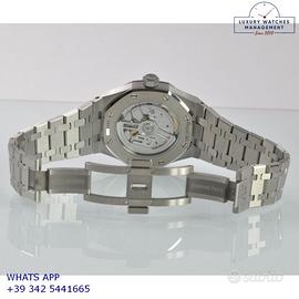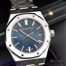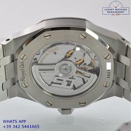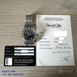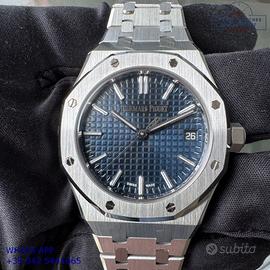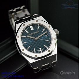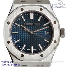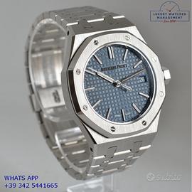 Per conoscere il prezzo e le caratteristiche tecniche dei nostri orologi visita il nostro sito ufficiale: https://lwmitalia.com/it Tutti i nostri orologi vengono verificati e revisionati dal nostro laboratorio specializzato “KeepTime Lab”: https://keeptimelab.com/it/ Audemars Piguet Royal Oak 50th Anniversario in acciaio, anno di produzione 2022, ghiera ottagonale in acciaio a 8 viti, vetro zaffiro antiriflesso piatto, quadrante grande tapisserie colore blu con data indici e sfere al LumiNova, movimento meccanico a carica automatica, bracciale acciaio con doppia chiusura deployante originale Audemars Piguet. Orologio Audemars Piguet originale in ogni sua parte, molto raro, 50° anniversario per festeggiare i 50 anni dalla nascita del Royal Oak, mai indossato, nuovo e senza segni di usura, full set (scatola, vari accessori, garanzia ufficiale Audemars Piguet Valida fino al 20 Agosto 2027), garanzia/dichiarazione di vendita del nostro negozio valida per 12 mesi.