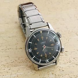 Quadrante nero lucido, indici luminescenti, a radium , ghiera girevole. Corone a griglia.