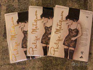 Calze donna Autoreggente Philippe Matignon Noblesse 50 Bas-Jarretière balza pizzo. calze nere 50 denari tg. 3. Prezzo 10,00 cadauno. Chiedere se si vuole una quantità maggiore