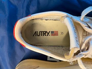 Sneakers Autry Medalist low in pelle bianca e rossa e suede beige. Senza scatola, usate pochissimo. Numero 35