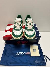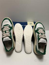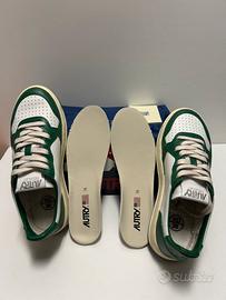 Autry Medalist Numero 38 La soletta interna è lunga 25 cm In vera pelle, bianche e verdi Nuove!! Mai indossate!! Prodotto 100% originale, completo di scatola originale, dust bag , passaporto di autenticità con QR code e qr code dentro la linguetta Massima trasparenza e disponibilità. È possibile visionarle di persona nella zona di Pordenone. Contattatemi per ulteriori informazioni. No perditempo! A differenza della maggior parte di scarpe false presenti su questa piattaforma, queste sono nuove e originali! Contattatemi per ulteriori informazioni!