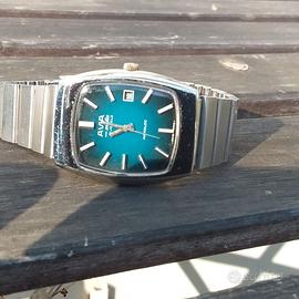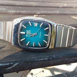 Anni 70,cassa in acciaio 3,2cmx4cm,revisionato,quadrante turchese.garanzia 12 mesi funzionamento