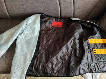 La giacca si presenta in ottime condizioni, dotata di protezioni rigide su spalle e gomiti (inserti, rimovibili) e tasca per paraschiena mobile (non presente). Presenta inoltre un'imbottitura con cerniera per rimuoverla in estate. La giacca ha bottoni sulle maniche e velcro posteriori. Ha prese d'aria a livello delle spalle e polsini con bottone e cerniera.