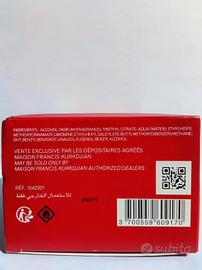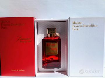 Vendo Baccarat Rouge 540 Extrait de Parfum 200 ml di Maison Francis Kurkdjian. Formato 200ml Extrait de parfum Spruzzato una sola volta, livello praticamente pieno (visibile in foto) Completo di confezione originale (scatola rossa, interna e supporto) Batch code presente e corrispondente su scatola e bottiglia Made in France Fragranza molto persistente, percepibile anche sui tessuti dopo giorni. Preferibile ritiro a mano, disponibile anche spedizione. Prezzo: 520€ trattabili. Per ulteriori info o foto contattatemi pure in chat.