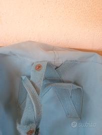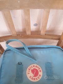 Zaino originale marca Fjallraven modello Kanken dimensioni altezza 38cm larghezza 27cm profondità 13cm volume 16L colore azzurro chiusura con cerniera tasca anteriore con zip regolabile da riparare condizioni come da foto.Per ulteriori info e foto su questo articolo o su qualsiasi altro prodotto non esitate a scrivermi