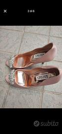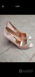 Scarpe decolletes badgley Mischka rosa satinato con tacco e gioiello anteriore, Ottime condizioni indossate pochissimo. Tacco un po’ scurito.