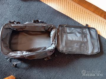 Nuovo , nero o altri colori , poliestere riciclato 100% Bagaglio a mano accettato (Ryanair, EasyJet, Wizzair, Ita,Iberia, Vueling etc). 40×25×20 cm – nuovo con etichette. Può essere indossato come zaino o borsa a tracolla. consegna a mano a Roma previo accordo