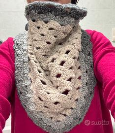 Baktus/scialle in lana . Fatto a mano all’uncinetto . Dimensioni 90 cm di larghezza e 50 cm di altezza Accetto offerte