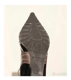 Stivaletto in pelle vera vernice , multicolore,tacco 8.5 cm numero 37,con lacci regolabili,e suola in gomma