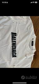 Vendo t-shirt originale Balenciaga modello Destroyed in cotone bianco con logo nero stampato sul petto. Taglia XXS (vestibilità ampia, adatta anche a XS/S da uomo o S/M da donna). Modello unisex