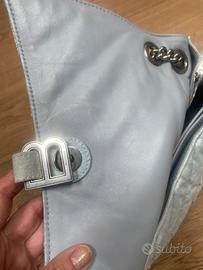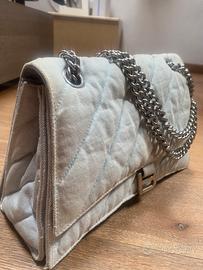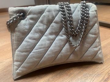 Borsa iconica Balenciaga pagata circa 2.500€ retail. Balenciaga Hourglass denim chain bag Small originale in denim con tracolla a catena. Interno pulito e hardware in ottimo stato.