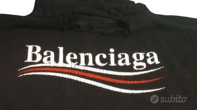 Un modello ambito della casa Balenciaga Oversized ampio adatto a quasi tutte le taglie! Realizzato in poliestere e cotone di spessa qualità Design completamente usurato Si noti che originariamente questo modello ha uno strato doppio visibile attraverso i dettagli dall'aspetto usato Questo strato inferiore è stato rimosso professionalmente perché è più comodo indossare sotto una maglietta a scelta, migliorando la morbidezza Di conseguenza l'etichetta del collo e l'etichetta di lavaggio non sono più presenti Ovviamente controllato completamente per l'autenticità Taglia ufficiale S Unifit Oversize (one size fits all) Dimensioni: Larghezza ascella-ascella: 62 cm Lunghezza dalla spalla al fondo: 80 cm Maniche dall'ascella: 51 cm