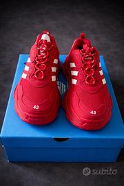 Balenciaga x Adidas Triple S rosse - NUOVE, mai indossate Vendo rarissime sneakers Balenciaga x Adidas Triple S colore rosso con stripes bianche, uno dei modelli più iconici e ricercati della collaborazione. Condizioni: nuove, mai indossate (come da negozio) Complete di scatola originale e dust bag Colorazione super d'impatto e difficile da trovare Modello chunky iconico, comodissimo e di alta qualita Scarpa di lusso che unisce lo stile streetwear Adidas con il design premium Balenciaga. Perfetta per chi vuole distinguersi davvero. Originale 100%