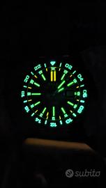 ANTI-MAGNETISM 1.000 Gauss (80.000 A/m) MICRO GAS TUBES 29 micro gas tubes on hour minute and GMT hands, dial for night readind capability