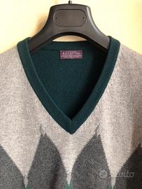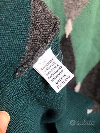 Maglione Ballantyne 100% cachemire colore verde a rombi originale made in scotland. Taglia 42 usato ma in condizioni perfette