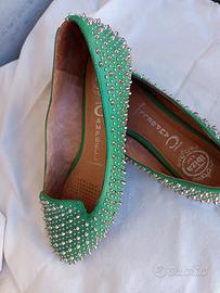 Ballerina Campbell tg 38 verde con borchie indossata 3- 4 volte