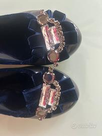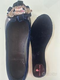 Ballerina nuova! Per cambio numero n.39 In gomma grigia e interno in velluto blu. Con pietre.