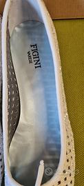 Ballerina traforata bianca lame, piccolo tacco N 38 praticamente nuove mai indossate. Pelletteria italiana