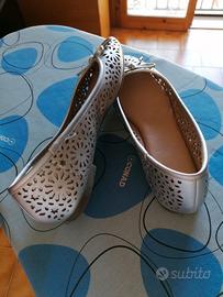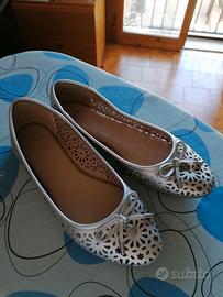Scarpe ballerine argentate e traforato.