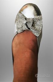 Deliziose ballerine color argento, con fiocchetto decorativo sulla punta. Taglia 39, comode e versatili, perfette per dare un tocco elegante a un look casual o da cerimonia.