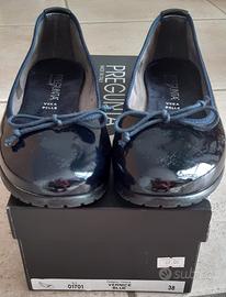 Ballerine in vernice blue n. 38, prodotto italiano con suola in gomma, soletta vera pelle, come nuove. Da provare senza impegno.
