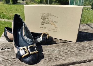 Ballerine Burberry tessuto tipico e pelle usate pochissimo ben tenute e conservate, con la sua scatola originale