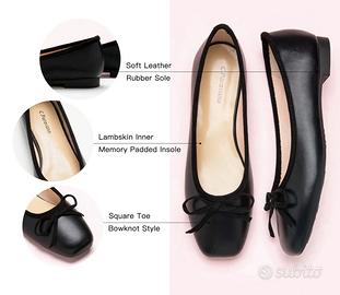 ✅NUOVE✅Ballerine C.Paravano Donna N.39,5 Nere. Incarnando stile e praticità, le nostre ballerine vantano un sottile fiocco sulla punta e una soletta ammortizzata. Questa combinazione ti assicura di fare una dichiarazione alla moda e camminare con sicurezza e stabilità. • Tomaia: Pelle Morbida (Micro Fibra) • Memory Foam Pad • Suola: Gomma • Punta quadrata • Styling slip-on • Decorazione del nodo Dimensioni: • Altezza tacco: 1,5 cm / 0,6" Le nostre scarpe sono fatte a mano e seguono gli standard delle taglie statunitensi, incluso un cuscinetto posteriore aggiuntivo che consente di mettere a punto la vestibilità, anche se sei tra le taglie.
