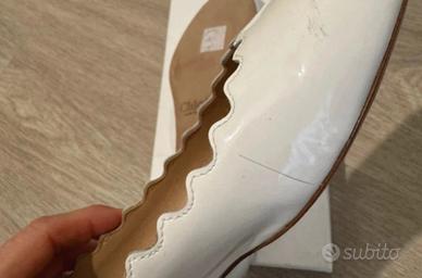 Ballerine in vernice bianca Chloé, modello lauren , modello continuativo, segnalo due piccoli segnetti dovuti al fatto che tenendoli nella scatola sono venute a contatto l’una con l’altra ed il prezzo ne tiene conto. Numero 36 e mezzo, calzata regolare